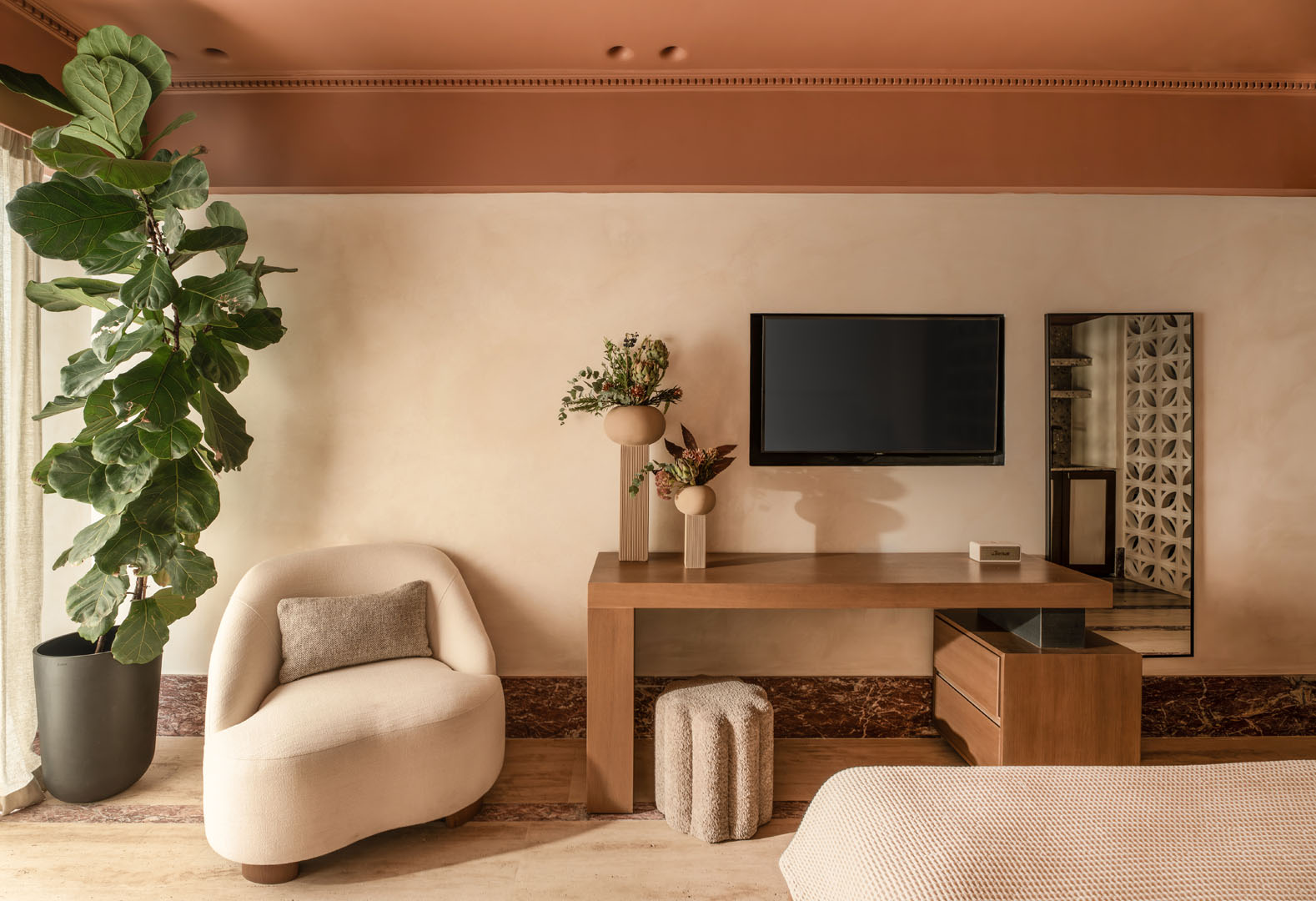 This apartment in Syros beautifully blends the island’s rich heritage with modern design. Drawing inspiration from the grandeur of neoclassical architecture, it features custom-made elements, marble floors, and a warm earthy color palette that creates a timeless and inviting atmosphere. The layout has been thoughtfully designed to ensure a seamless flow between spaces, allowing each room to feel connected yet distinct. Clean lines and well-balanced proportions give the apartment a harmonious feel, enhancing both functionality and aesthetic appeal.