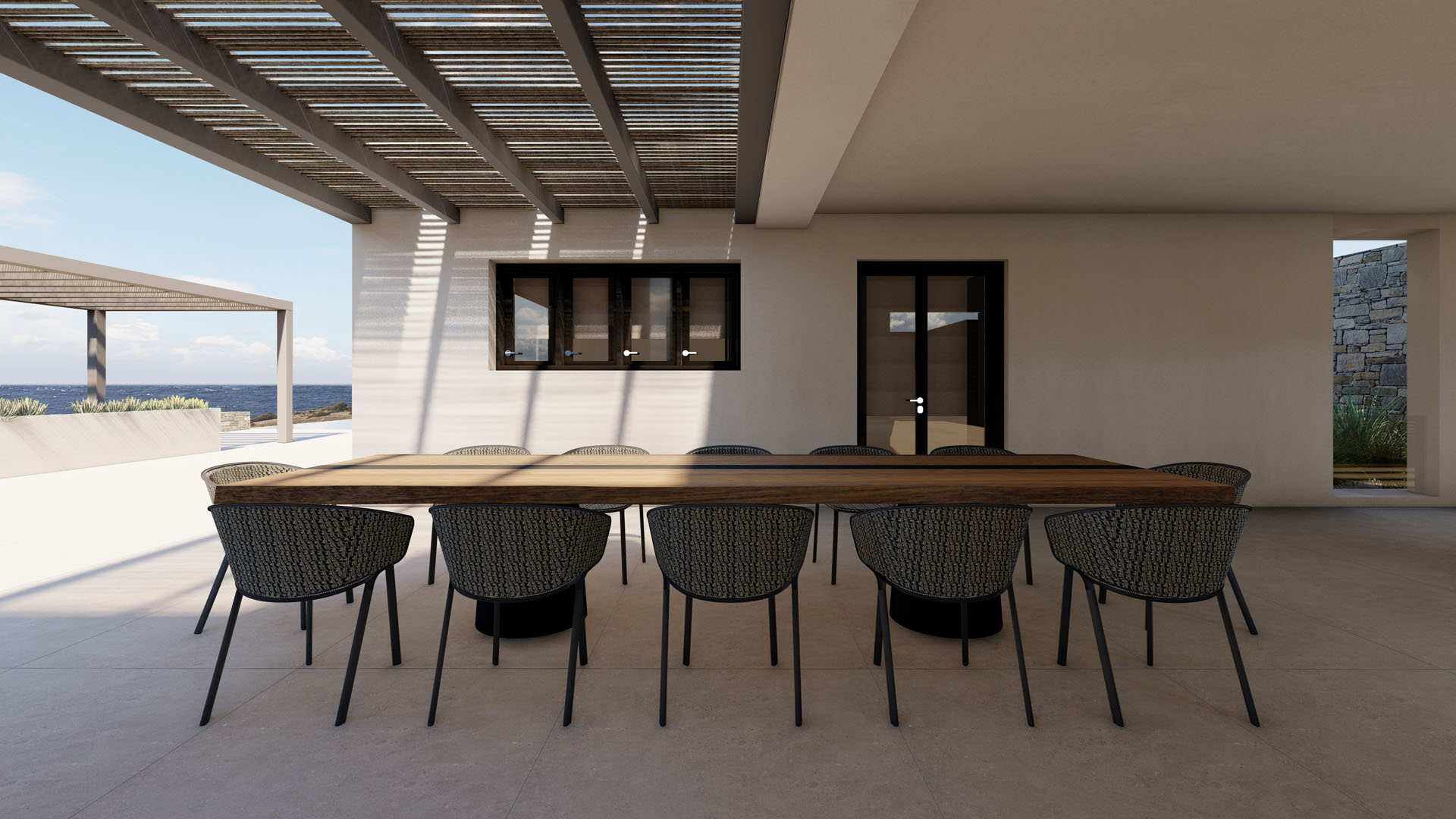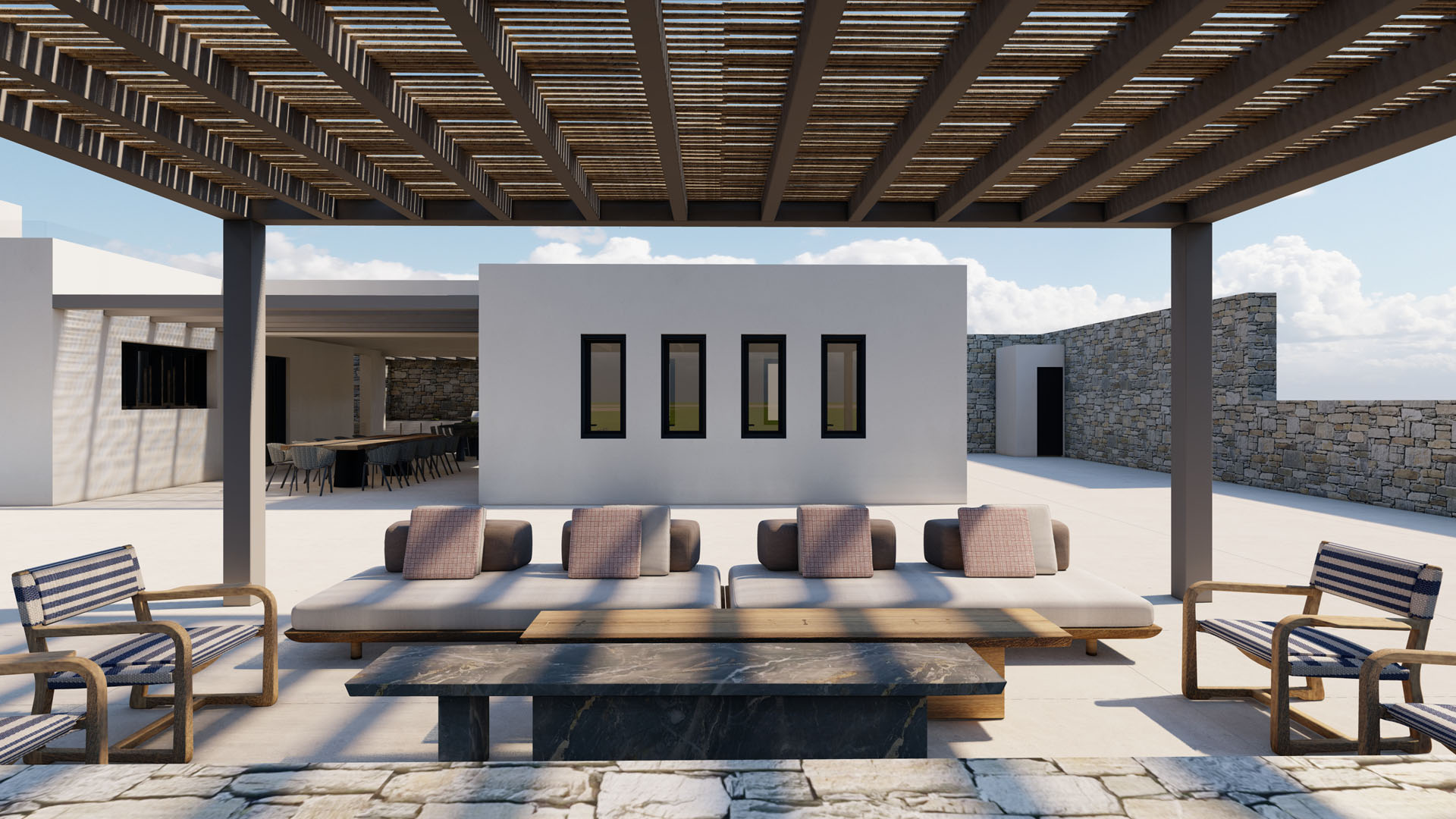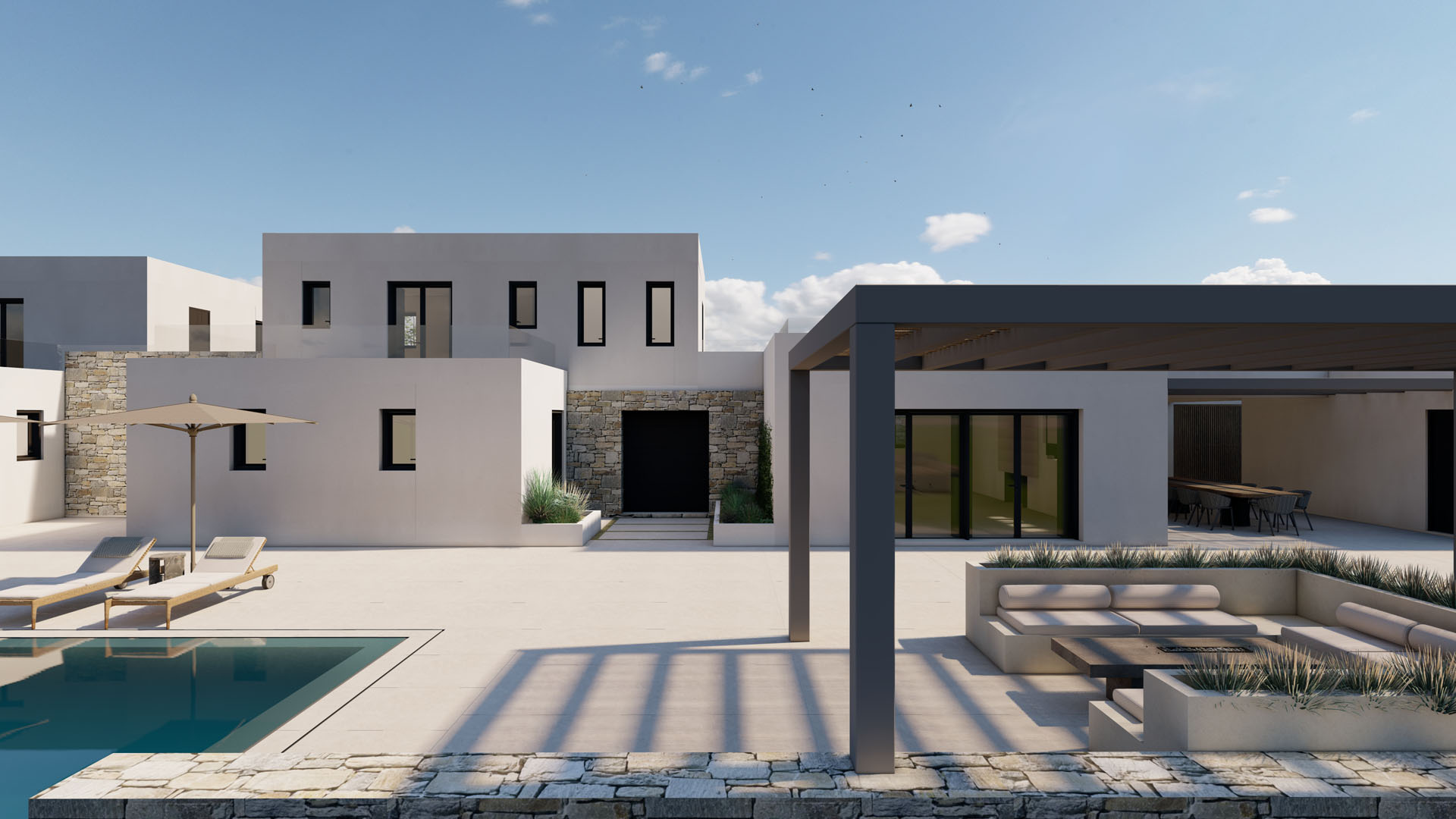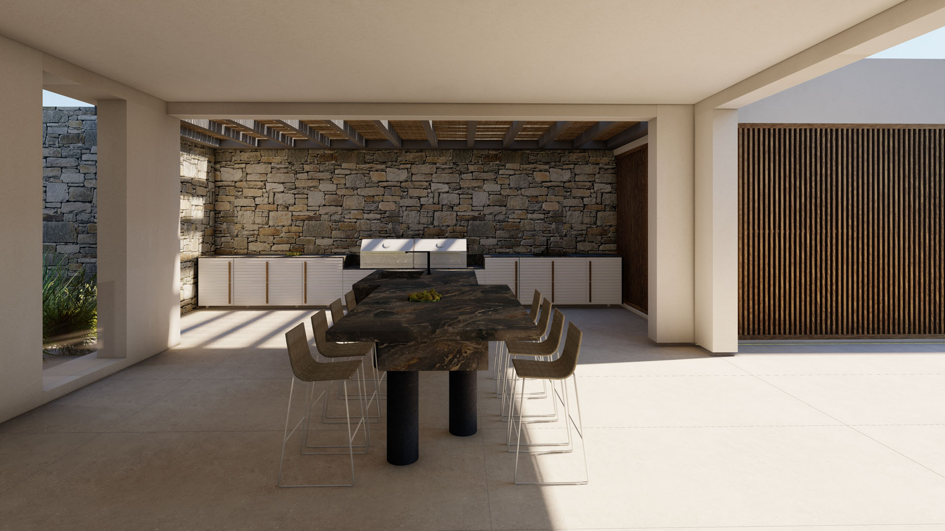 The result is a contemporary holiday residence that fuses authentic elements of Cycladic architecture with modern clarity, proposing a way of living that balances tradition with contemporary elegance.