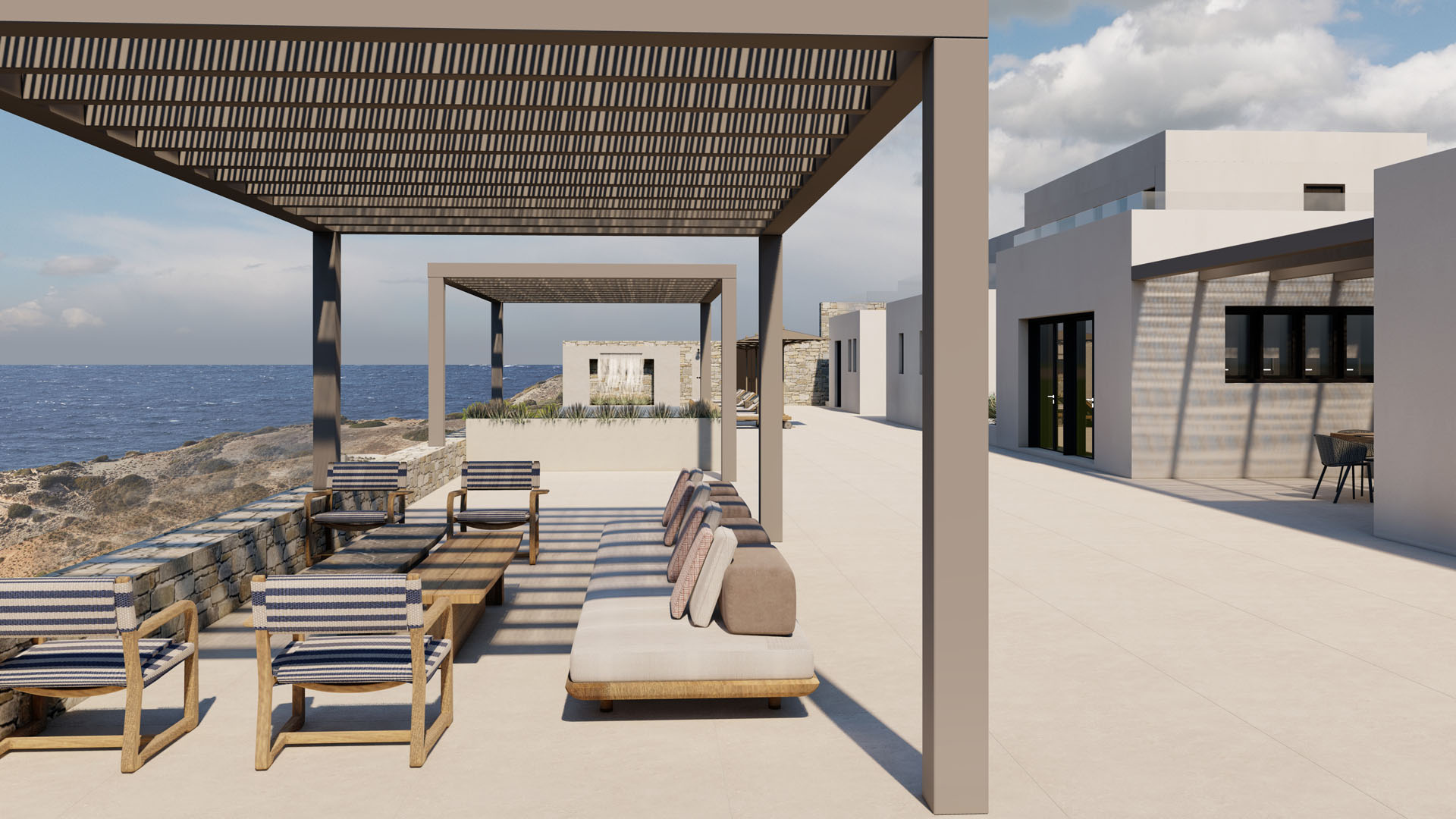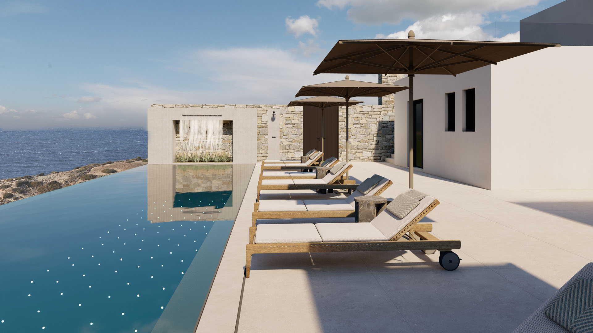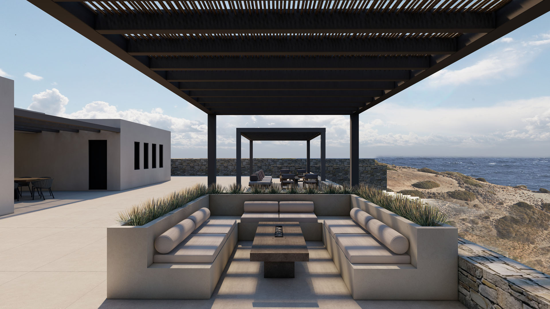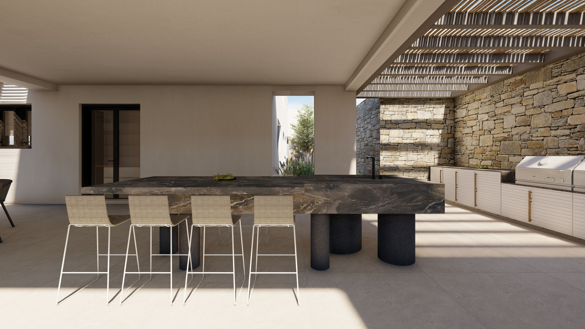 The result is a contemporary holiday residence that fuses authentic elements of Cycladic architecture with modern clarity, proposing a way of living that balances tradition with contemporary elegance.